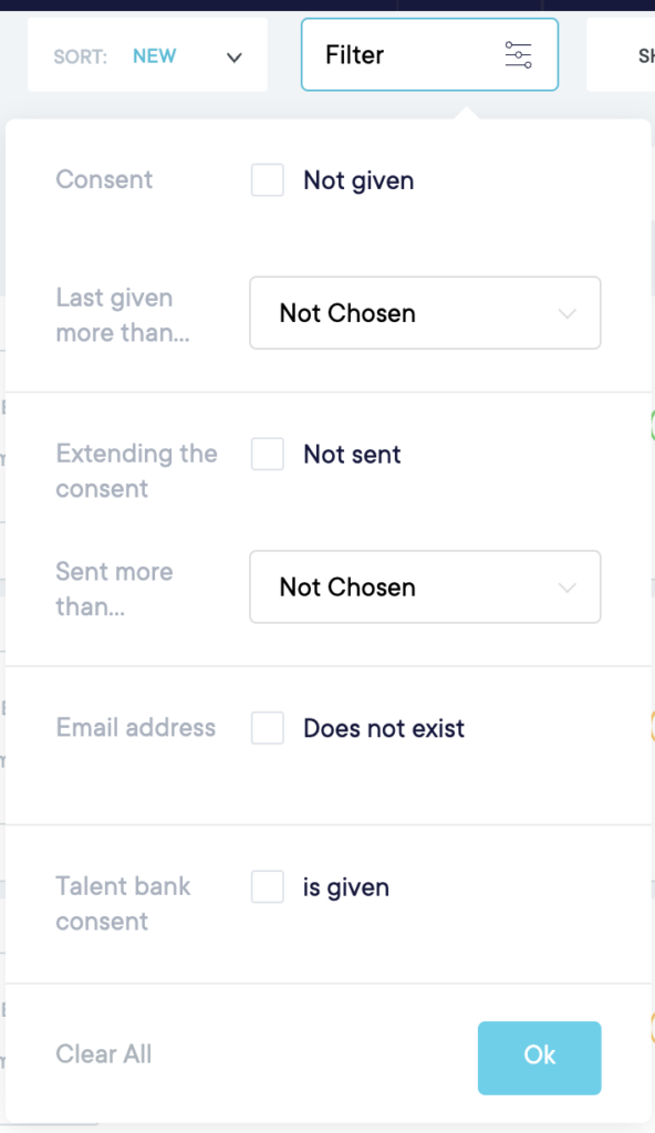 Talent bank cinsent – the candidate has given consent to store data in the Recrur talent bank and to make further job offers.