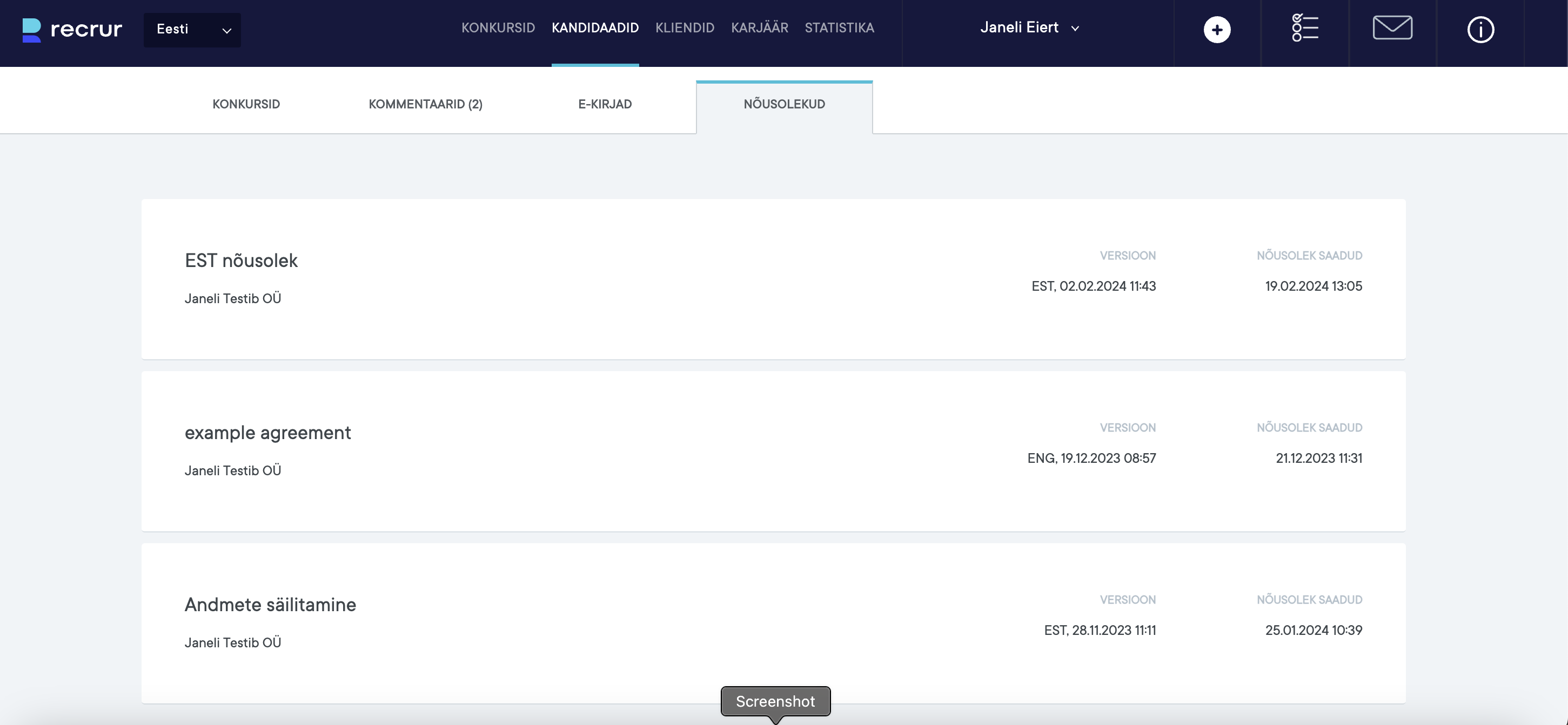 Nõusolekute alt näeb millal on kandidaat konreetsele nõusolekule kinnituse andnud: