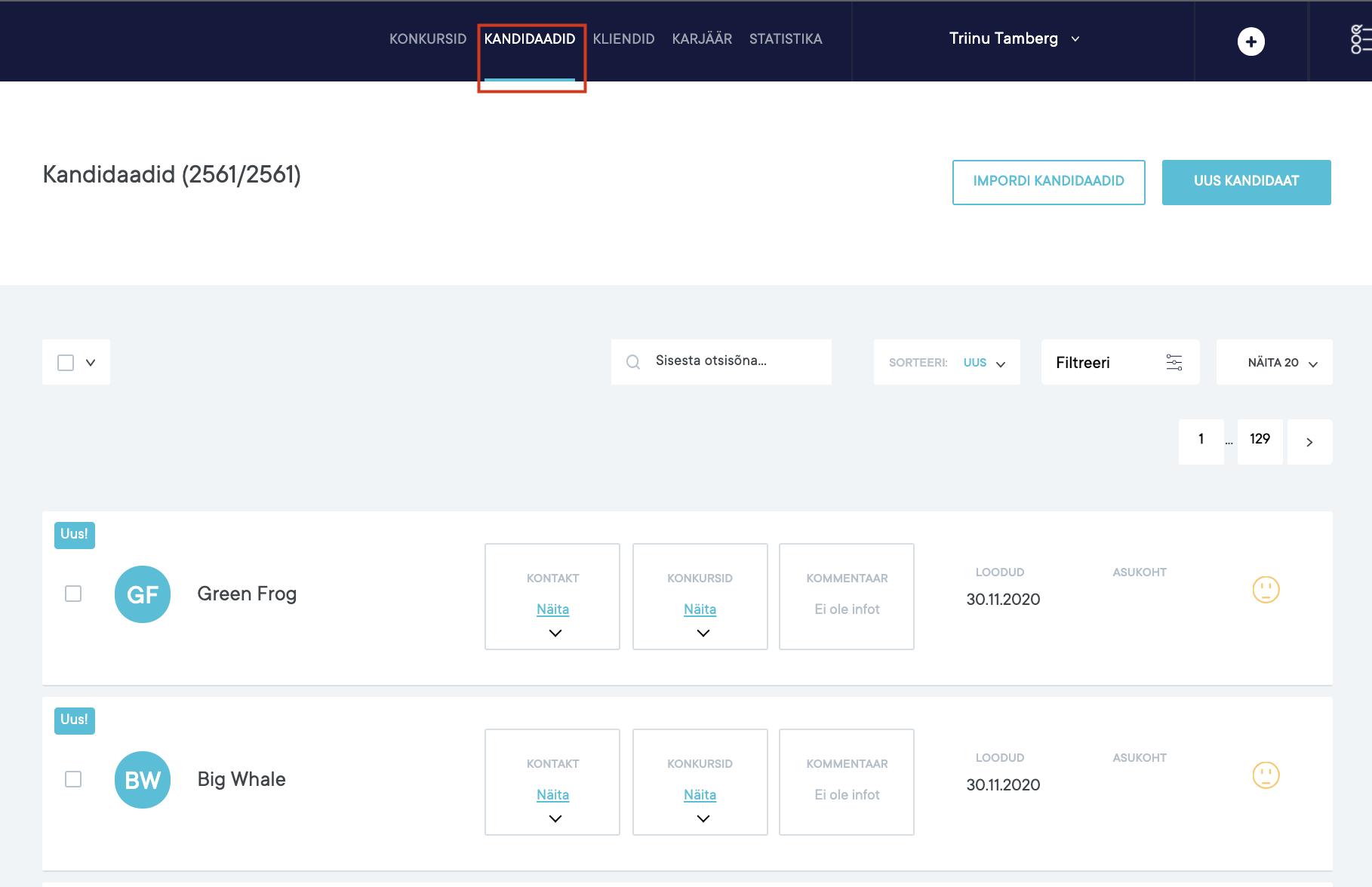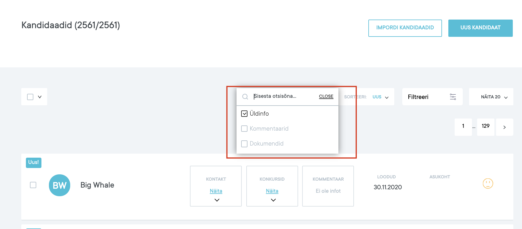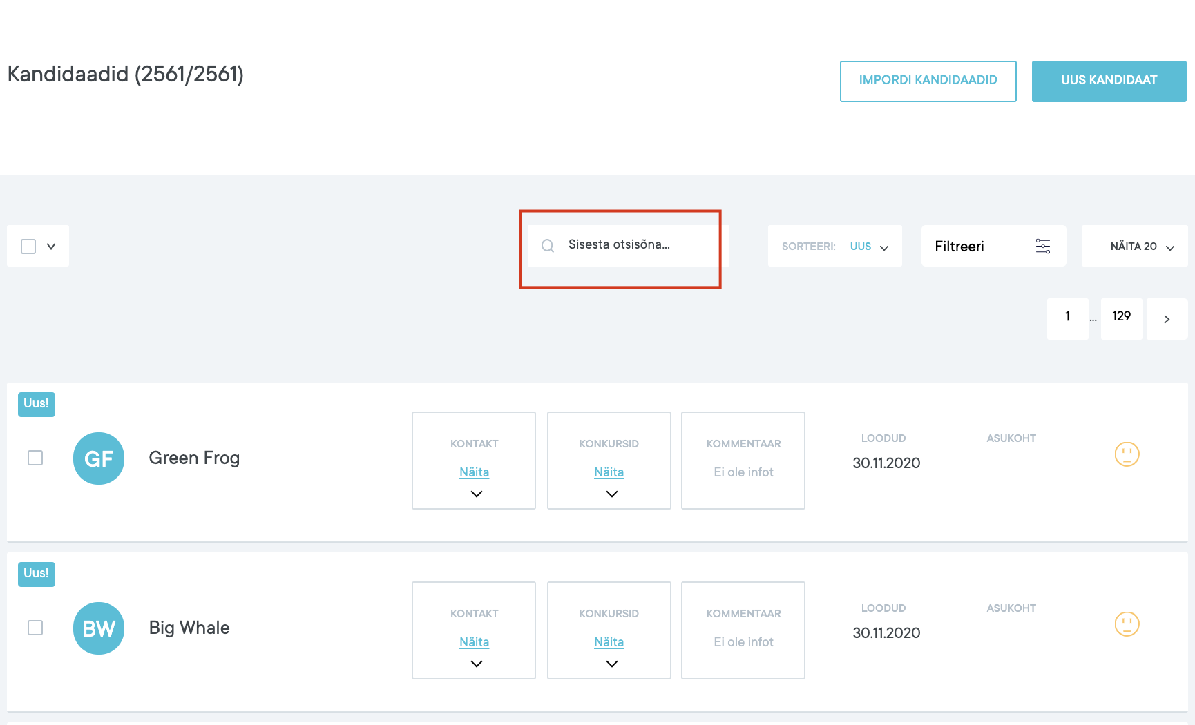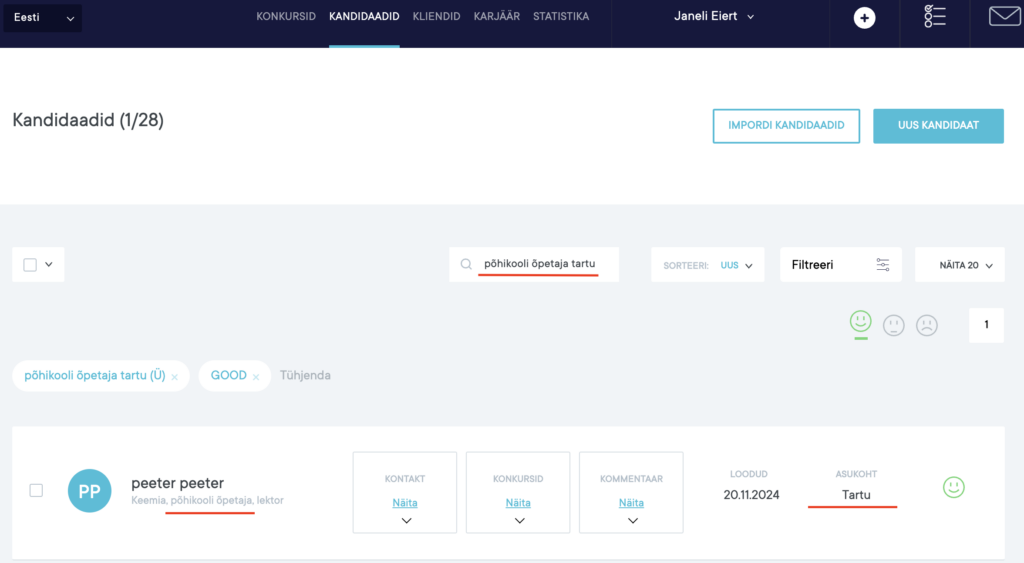 Kandidaatide otsingut saab teostada “Kandidaadid” vaatest: