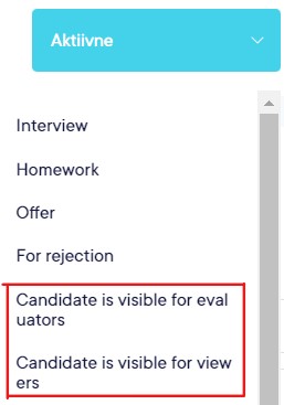 Faaside loetelust on võimalik valida kitsendused: kandidaat on nähtav hindajatele ja kandidaat on nähtav vaatajatele
