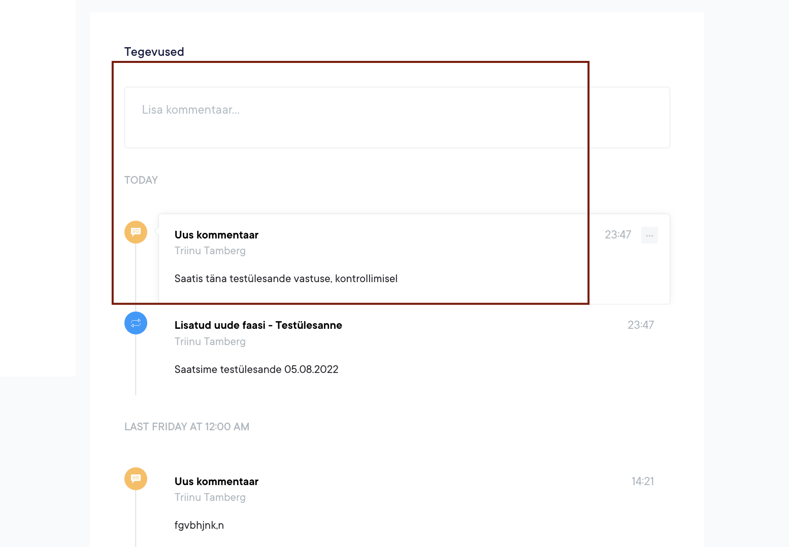 Kui valid siit loetelust mõne faasi, siis on võimalik lisada juurde ka kommentaar: