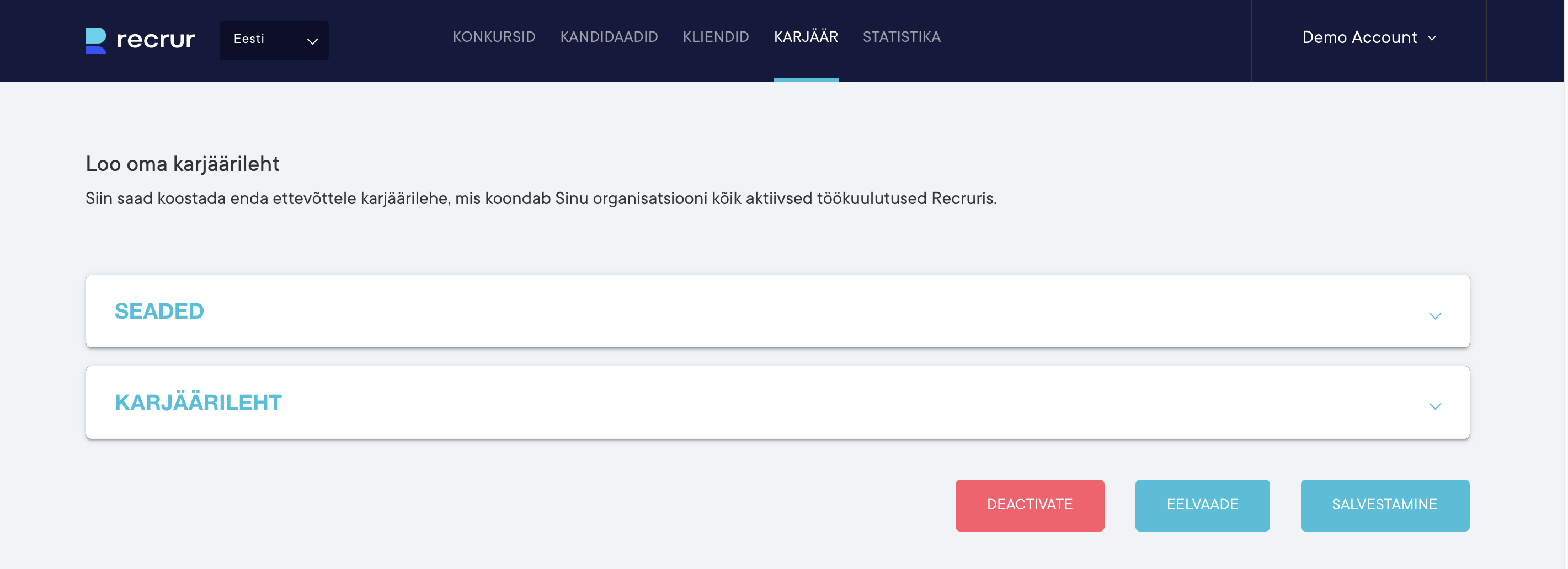 Igal ettevõttel on võimalik luua oma väärtusi edasi andev karjäärileht, mis kõnetab vajalikke kandidaate just teile sobival viisil, toob välja ettevõtte eripärad ja on ühendatud Recrur värbamistarkvaraga ehk võimaldab lihtsasti esitleda ja koondada kõik organisatsiooni töökuulutused/vabad töökohad.