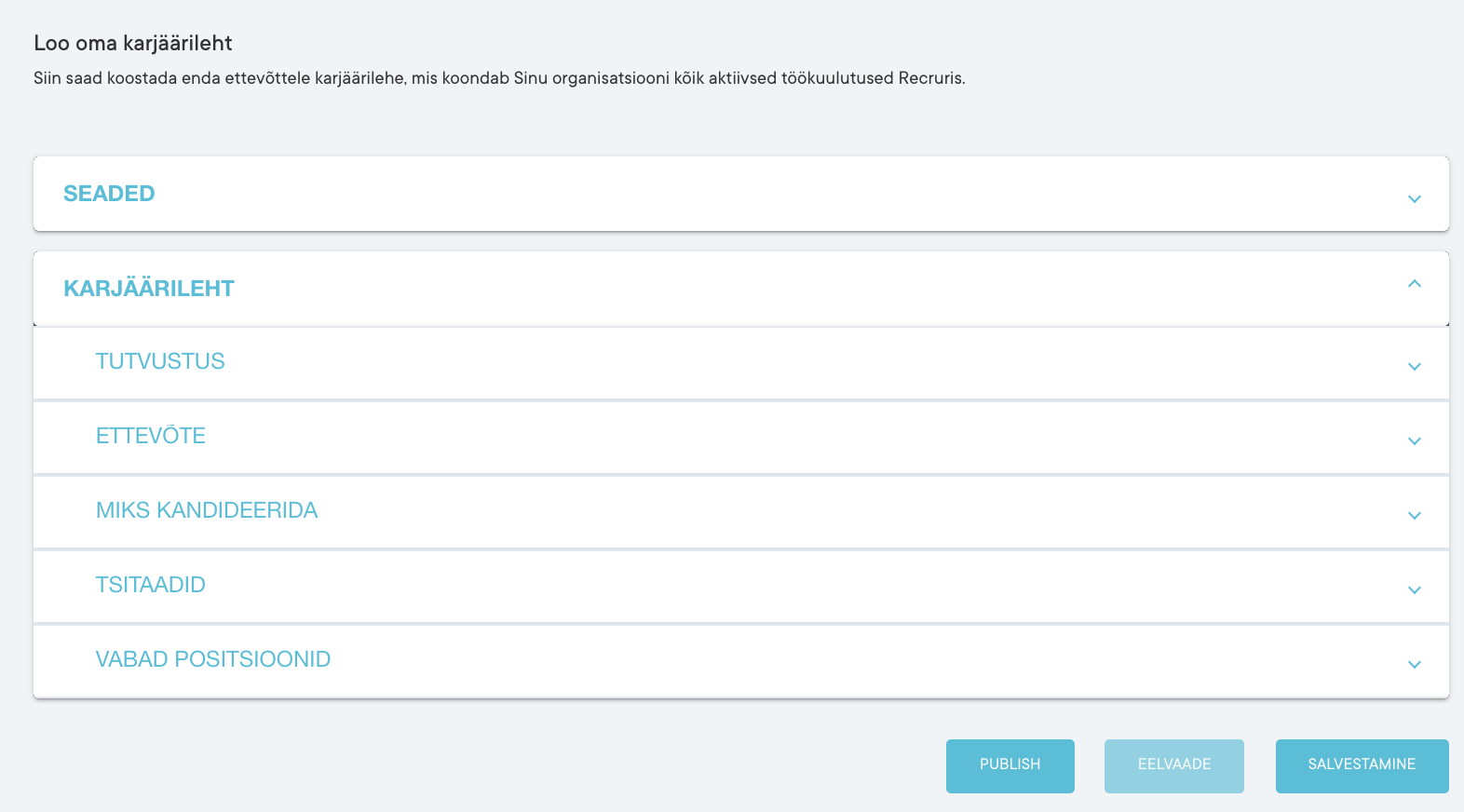 Selleks, et loodud karjäärileht oleks ka avalikult kättesaadav, tuleb vajutada nuppu “Avalda”.