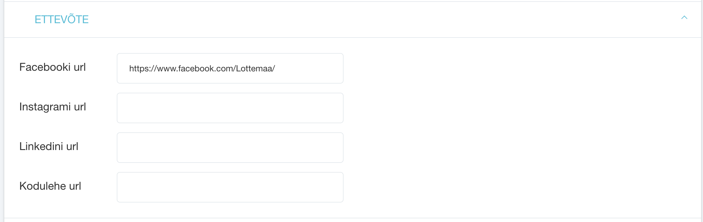 3.2 ETTEVÕTE – lingid ettevõtte sotsiaalmeedia kontodele. Soovi korral saab lisada viited linkide näol, karjäärilehele ilmuvad vastava meedia logoga nupud, mis suunavad siis omakorda lisatud lehele.