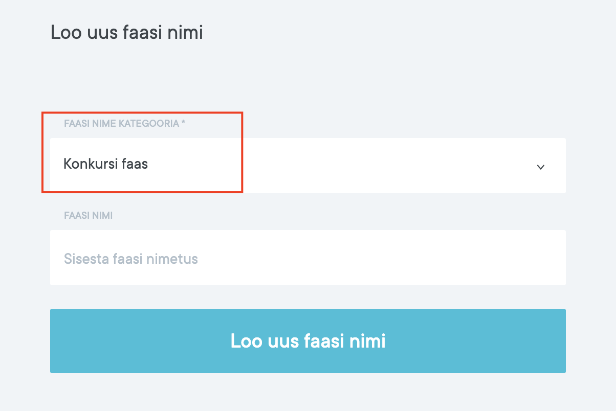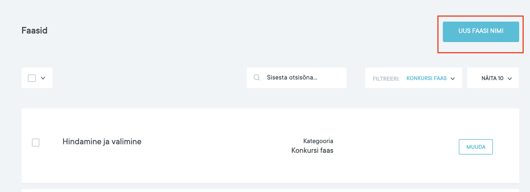 4. Kui soovid konkursi faase juurde lisada, vajuta nupule “Uus faasi nimi”