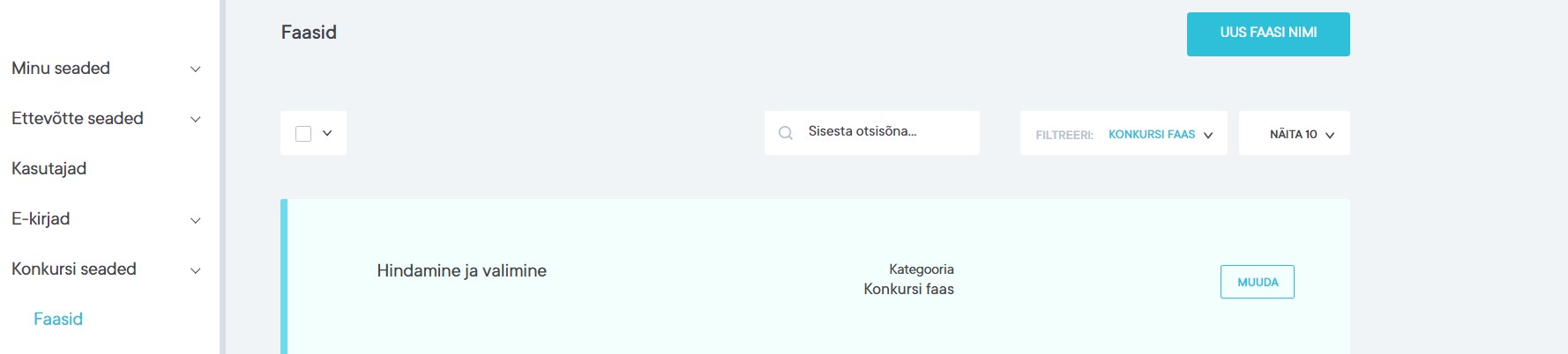 Selleks, et saaks paremini aimu, millises seisus teatud konkurss on, on kasutusel konkursi faas. Näiteks saad selle abil määrata, et konkurss on alles “Hindamisel” või hoopis juba “Kandideerimine lõppenud” vm faasis.