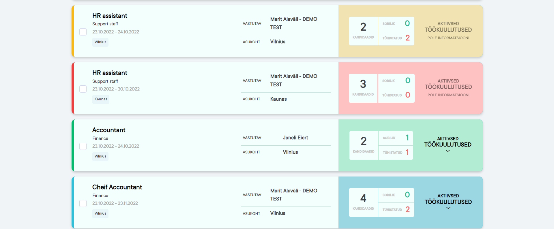 Kui konkurss on aktiivne ja luhtunud või aktiivne ja tähtaja ületanud, siis on konkurss punane.