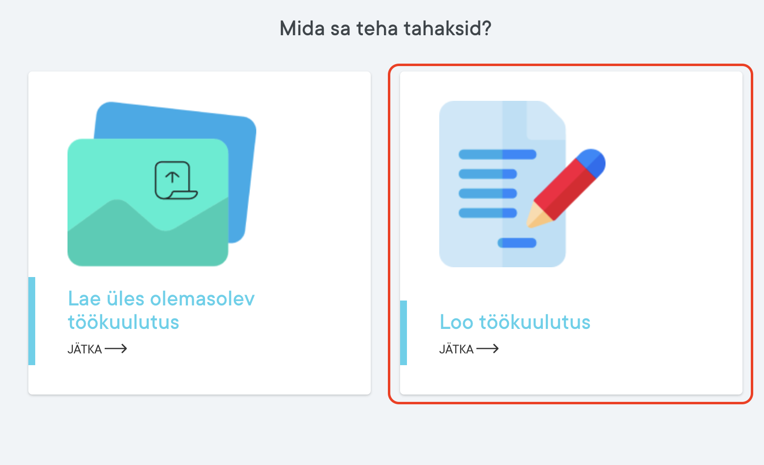 Seejärel vali paremal olev valik Loo töökuulutus. See tähendab seda, et hakkad töökuulutust looma ja andmeid sisestama: