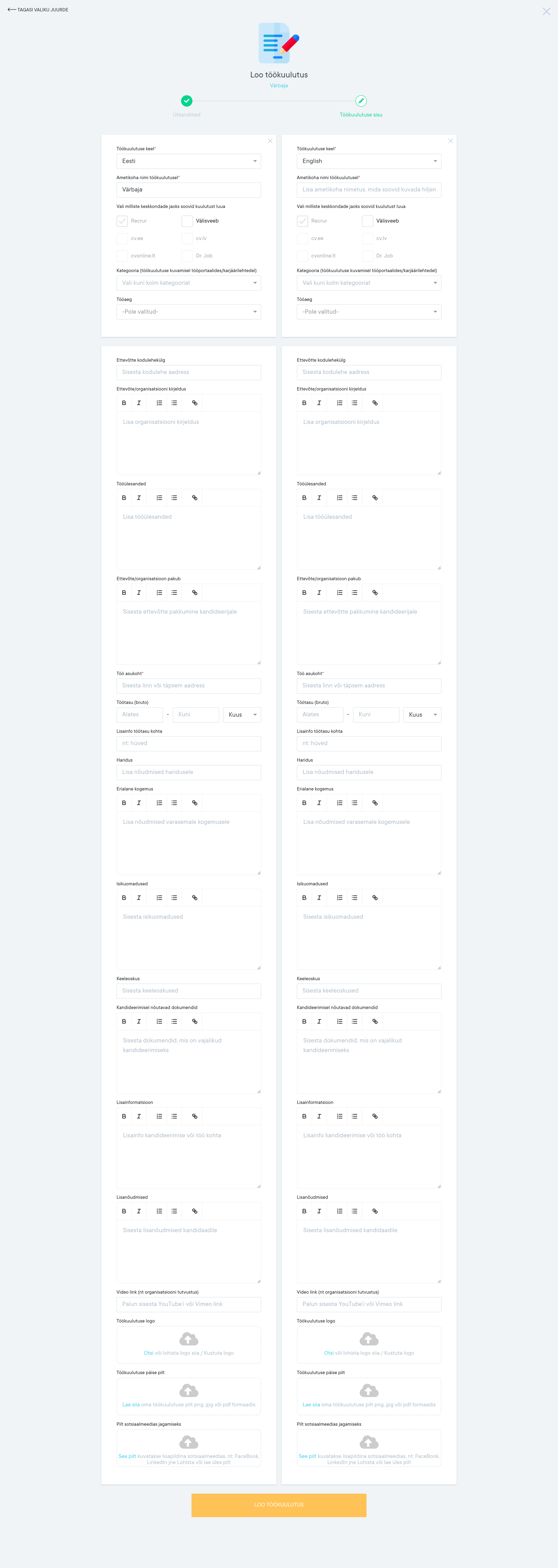 Lisaks on käsitsi loodud töökuulutusel võimalus luua samaaegselt kahes keeles töökuulutus: