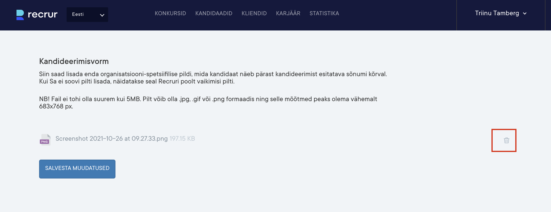 Kui oled pildi üles laadinud, vajuta nupule “Salvesta muudatused”. Edaspidi näevad kandidaadid kandideerimise järgselt uut pilti.