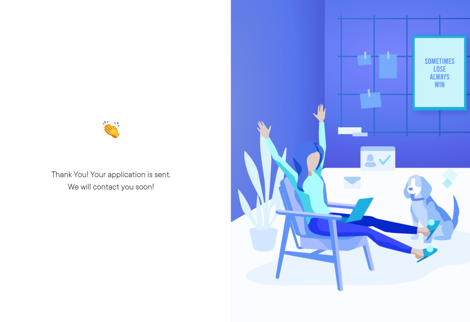 Kui oled loonud tööpakkumisele Recrur kandideerimisvormi, siis selle täitmise järgselt näeb kandidaat vaikimisi sellist vaadet: