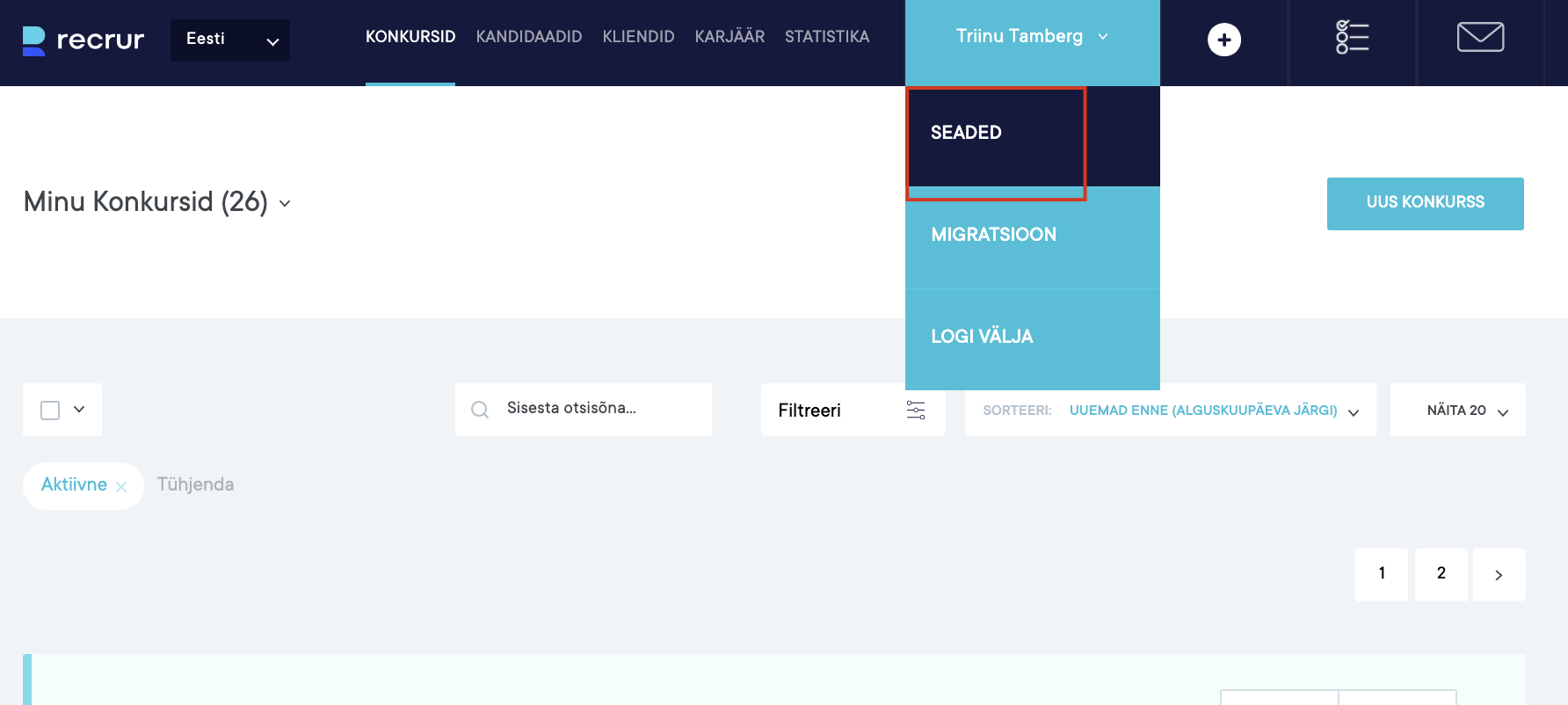 1. Liigu üleval ribal oma nime peale ning vali “Seaded”