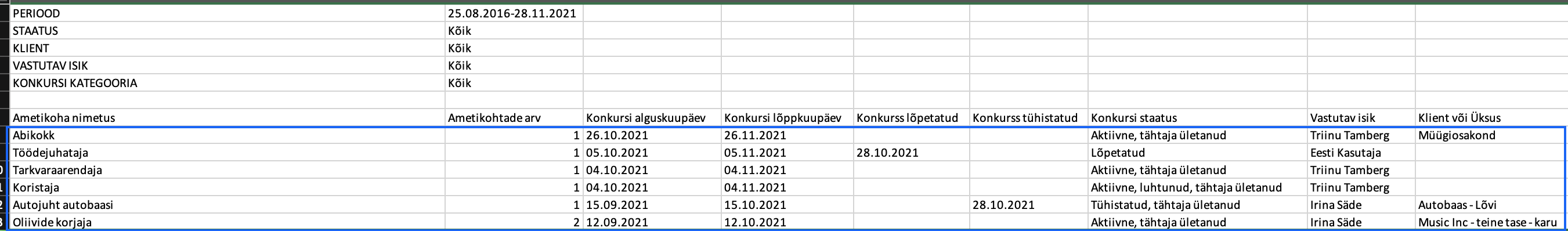– Mitu konkurssi oli valitud perioodi viimase kuupäeva seisuga aktiivsed