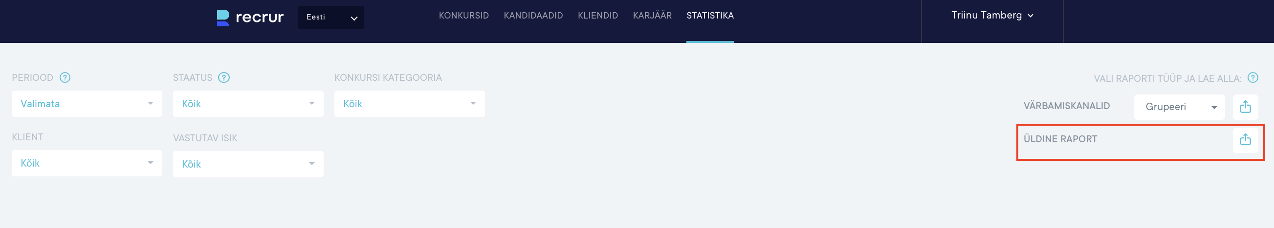 Koondstatistikat on võimalik välja võtta järgmiste kriteeriumite kaupa: