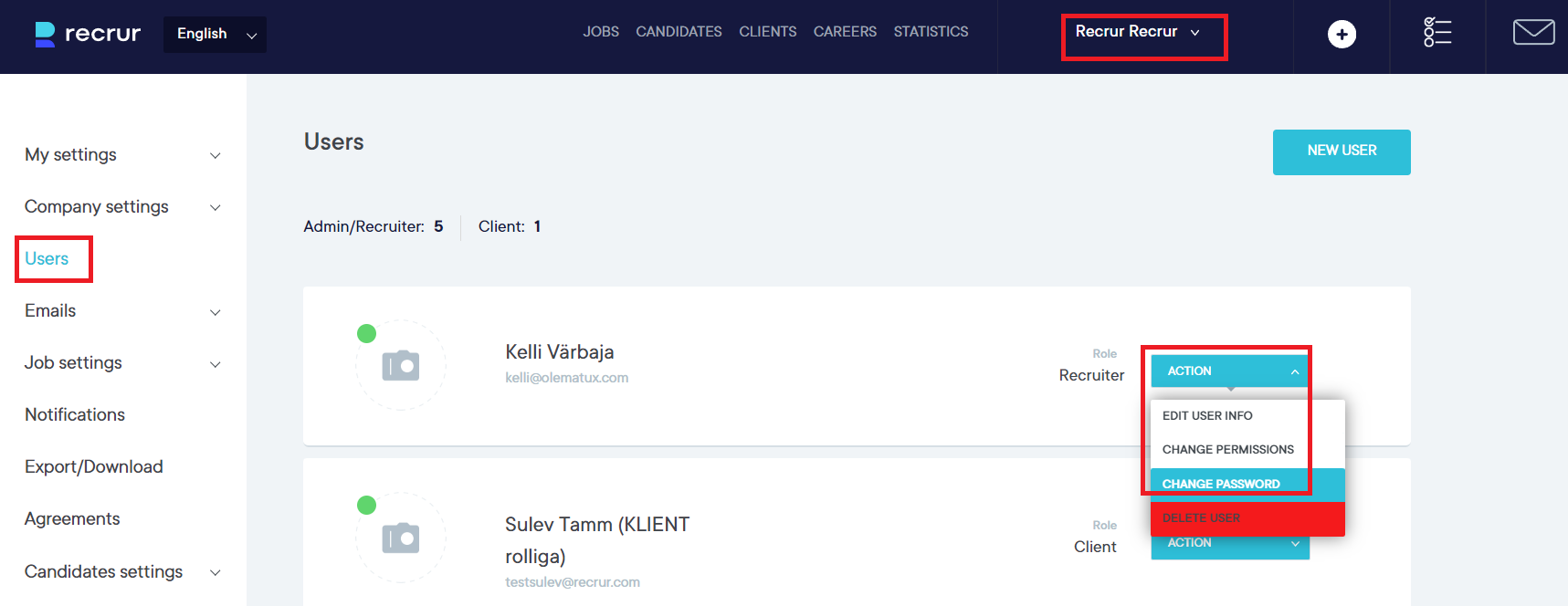 1. In order to change your password yourself, you need to go to Settings in Recrur: