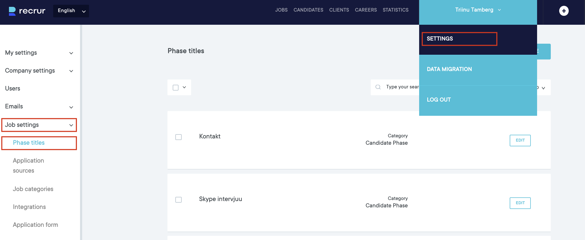 The creation of the in-house recruitment process should start with defining the phases that you want to use for candidates (eg “primary contact”, “interview”, “test assignment”, etc.).