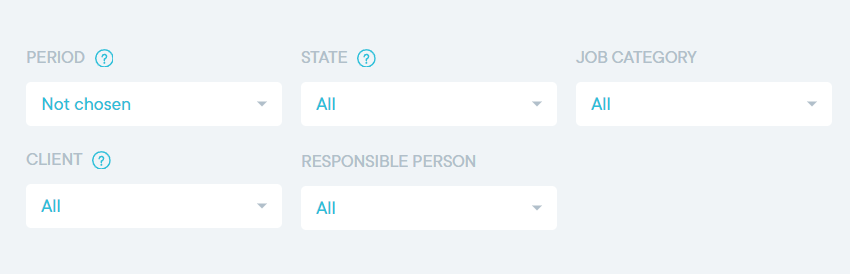 If you do not want to filter the result in any way then you do not have to select anything from the options here and they can remain as they are by default (for example, the period has not been narrowed, a specific client or responsible person has not been selected, etc.).